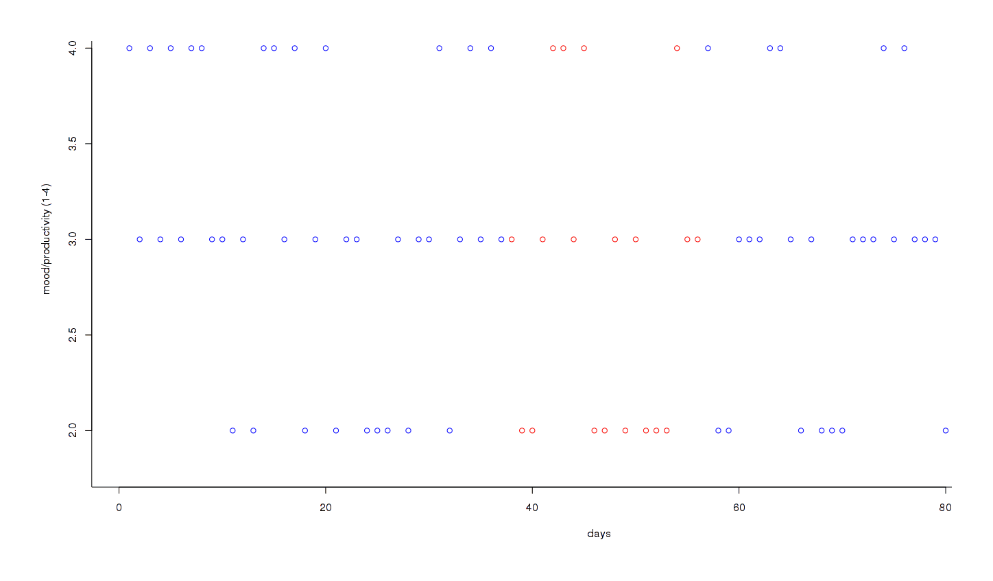 I’ve been criticized for calling it “double-blinding”. But if I am both the ‘subject’ and the ‘experimenter’, then blinding one person blinds both roles, and one ought to just call it “blinding”. I believe that “blinding” is ambiguous, though: perhaps I am using a friend or roommate to randomize each dose, in which single-blinding case it is not as good as when I “blind” myself (and achieve a double-blind). The terminology should reflect the true quality of each design, and not conflate single-blinding with double-blinding.↩︎