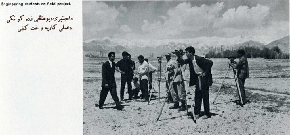 And for the Americans the heroic figure in all this was the Engineer. They poured millions into building a brand new engineering department in Kabul university. Here is a promotional photograph of the new engineers.