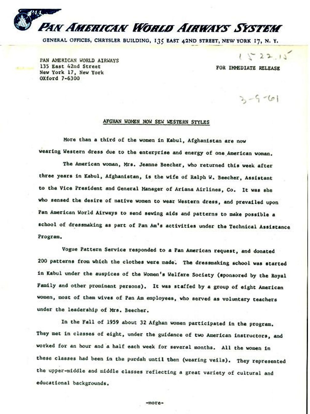 And here are some of the Vogue sewing patterns from 1960. Images of what the airline wives hoped Afghan women would become.