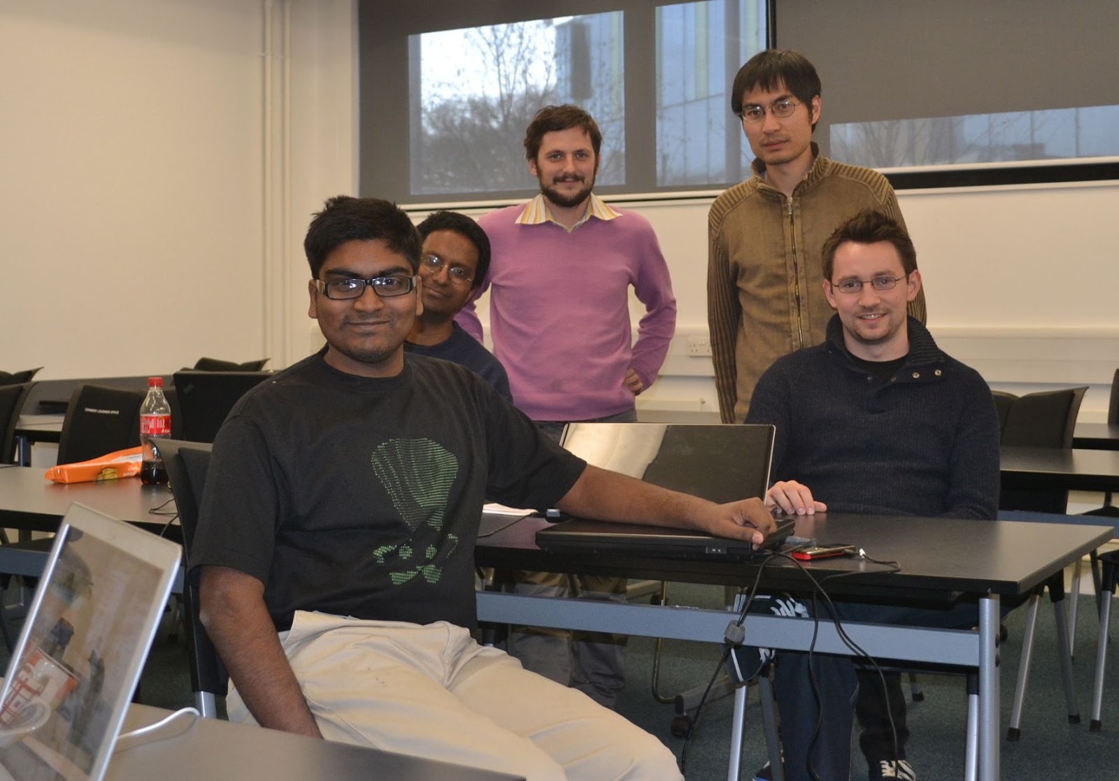 No Darcs hackers being shipped between the two sprints though, but we did have one visitor from afar. Potential GSoC student Bhimanavajjula Sri Rama Krishna (BSRK) Aditya flew the 9 hours between India and England to join us for the sprint. It was great to meet him in person!