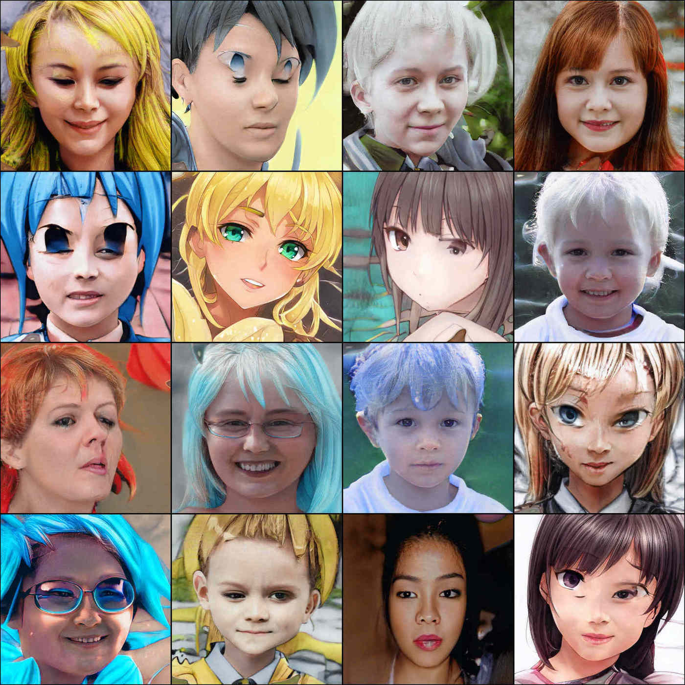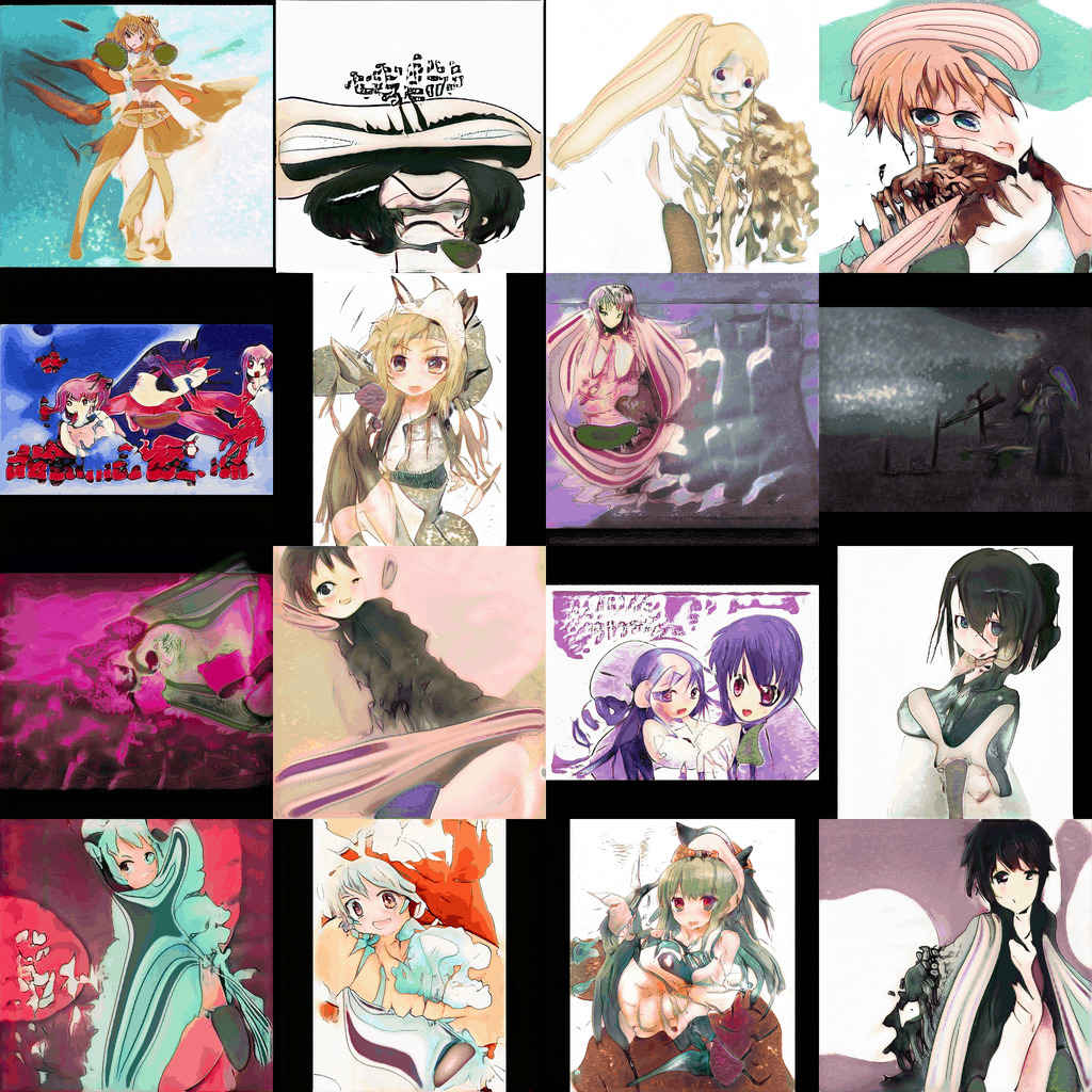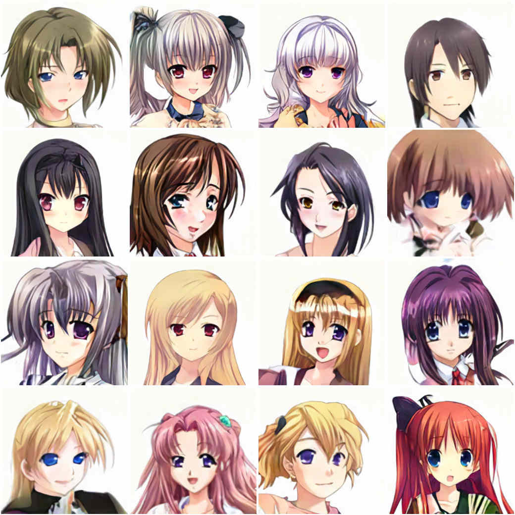 2017 SOTA: 16 random Make Girls.Moe face samples (4×4 grid)