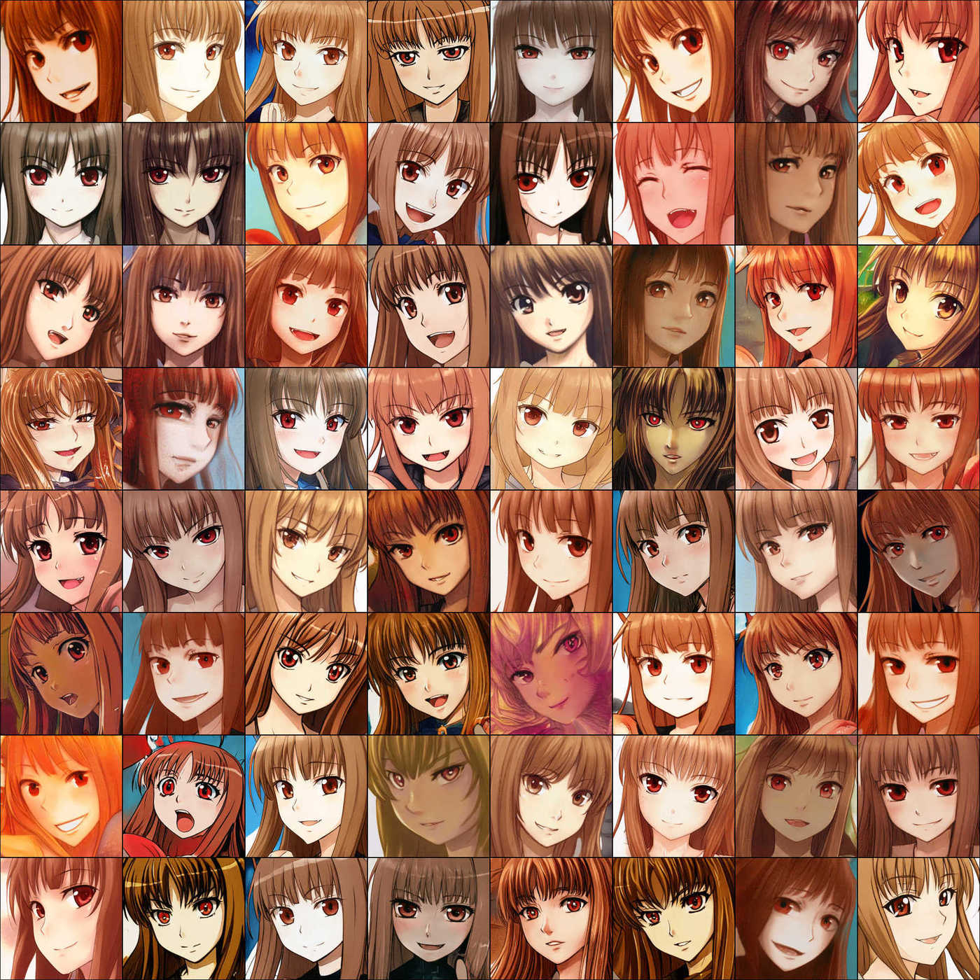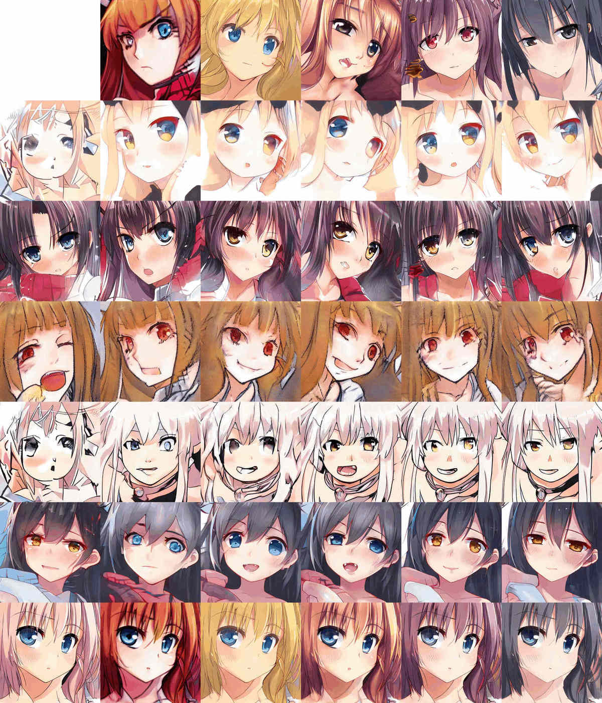 64 of the best TWDNE anime face samples selected from social media (click to zoom).