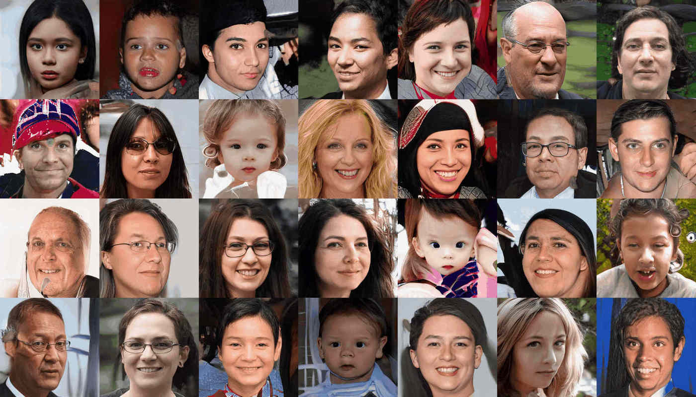 “This Person Does Not Exist” (random samples from the 1024px FFHQ face StyleGAN)