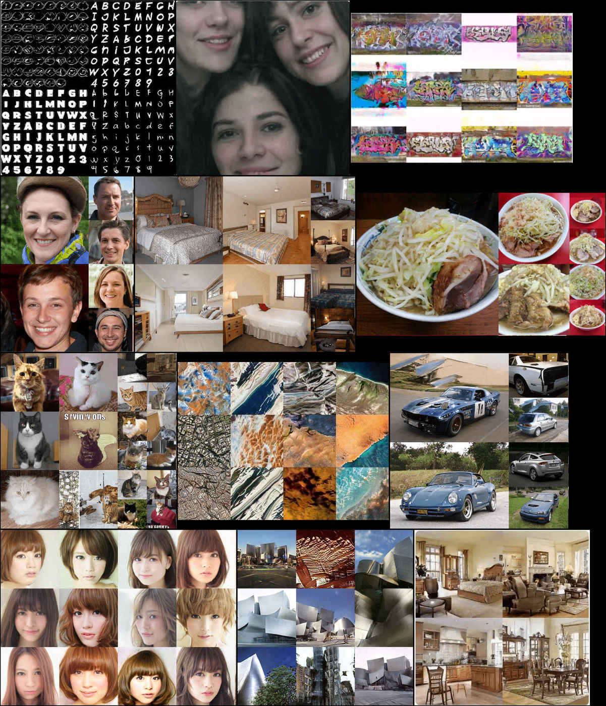 Imagequilt visualization of the wide range of visual subjects StyleGAN has been applied to