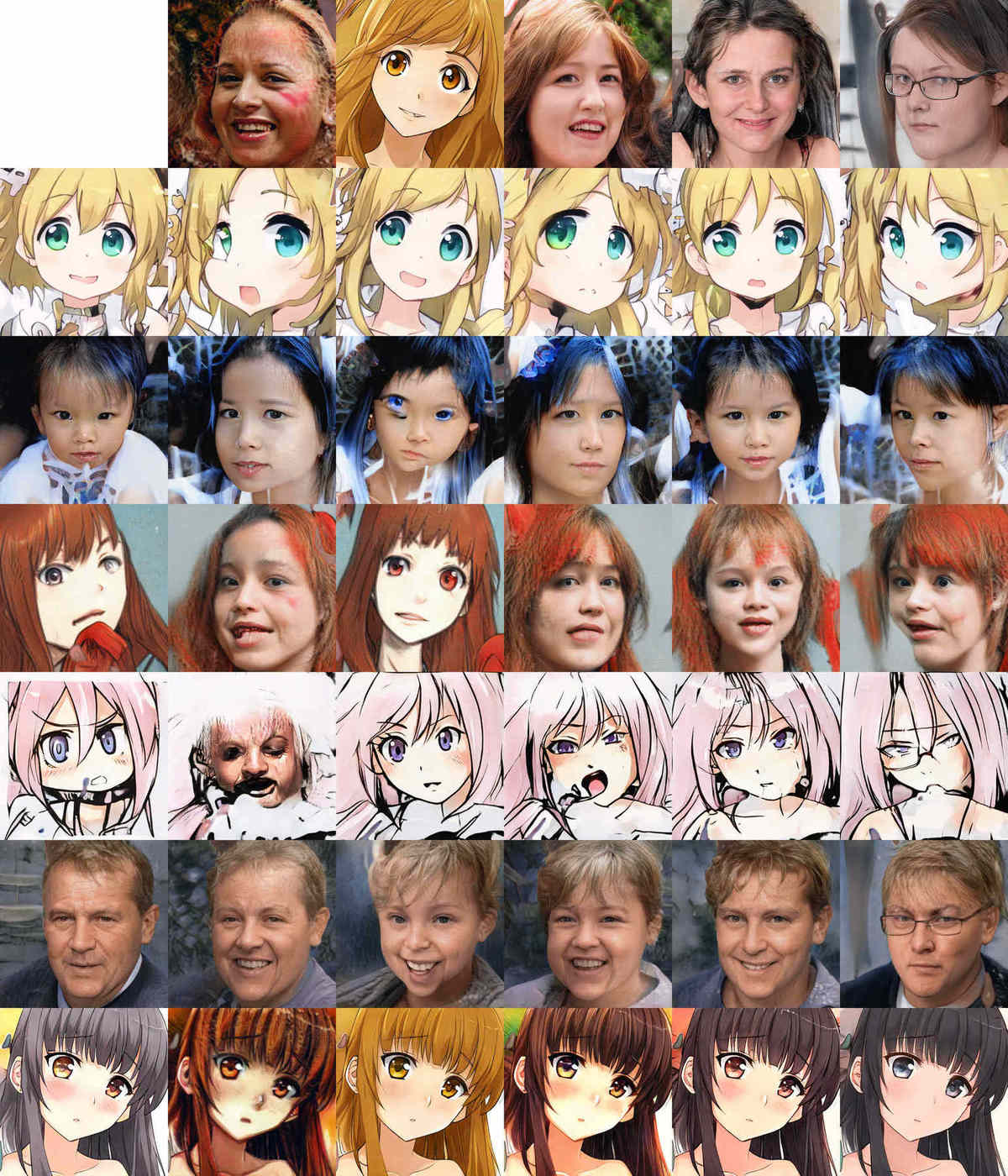 It turns out that this latent vector trick does work. Intriguingly, it works even better to do ‘model averaging’ or ‘model blending’ (“StyleGAN network blending”/“Resolution Dependent GAN Interpolation for Controllable Image Synthesis Between Domains”, 2020): retrain model A on dataset B, and then take a weighted average of the 2 models (you average them, parameter by parameter, and remarkably, that Just Works, or you can swap out layers between models), and then you can create faces which are arbitrarily in between A and B. So for example, you can blend FFHQ/Western-animation faces (Colab notebook), ukiyo-e/FFHQ faces, furries/foxes/FFHQ faces, or even furries/foxes/FFHQ/anime/ponies.↩︎