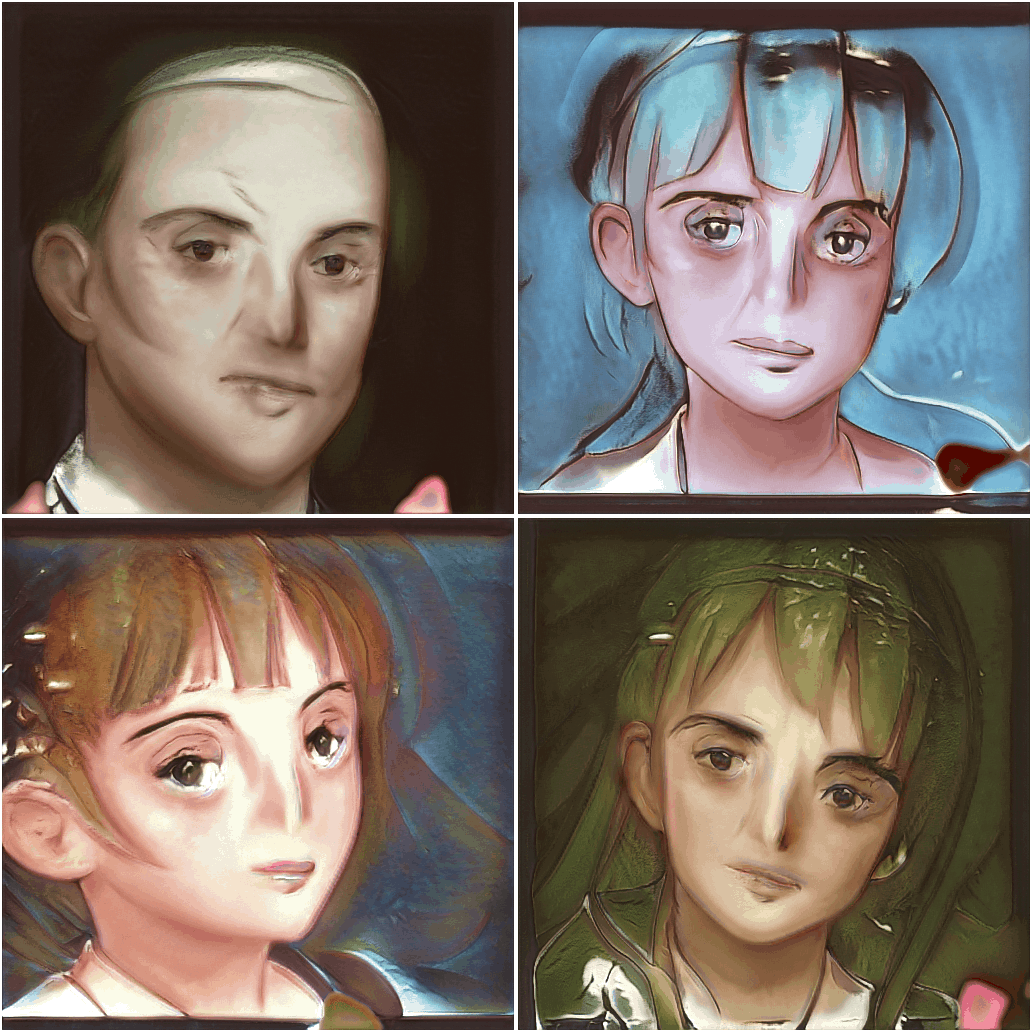 This raises a question of whether the StyleGAN architecture is necessary and whether many GANs might work, if only one had good style transfer for anime images and could, to defeat the texture bias, generate many versions of each anime image which kept the shape while changing the color palette? (Current style transfer methods like the AdaIN PyTorch implementation used by et al 2018, do not work well on anime images, ironically enough, because they are trained on photographic images, typically using the old VGG model.)