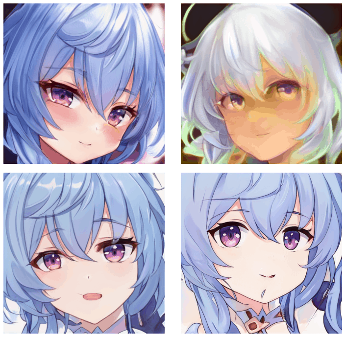 For application, I document various scripts for generating images & videos, briefly describe the website “This Waifu Does Not Exist” I set up as a public demo & its followup This Anime Does Not Exist.ai (TADNE) (see also Artbreeder), discuss how the trained models can be used for transfer learning such as generating high-quality faces of anime characters with small datasets (eg. Holo or Asuka Souryuu Langley), and touch on more advanced StyleGAN applications like encoders & controllable generation.